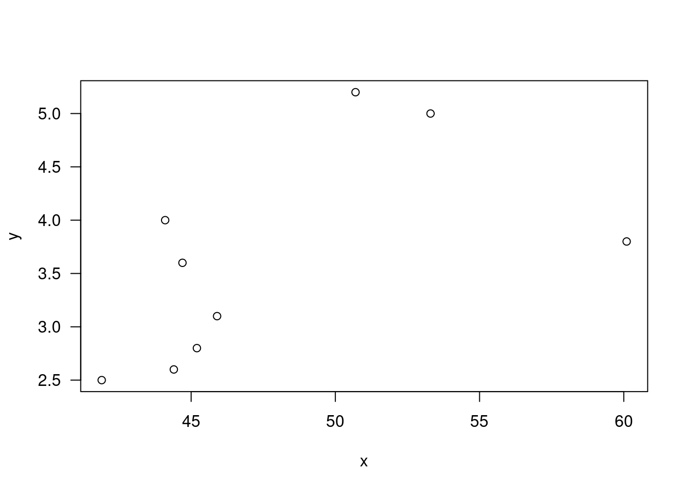 sum((x-mx)*(y-my))/(sd(x)*sd(y)*(n-1)); cov(x,y)/(sd(x)*sd(y))## [1] 0.5711816