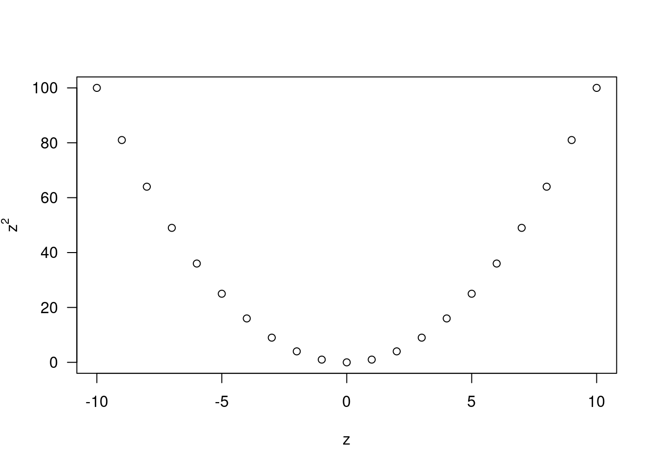 plot(z,z^2,las=1,ylab=expression(z^2))