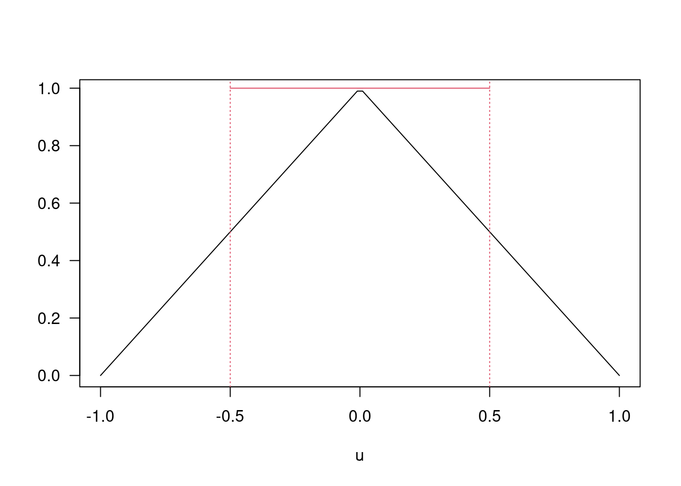 lines(c(-1/2,1/2),c(1,1),col=2); abline(v=c(-1/2,1/2),col=2,lty=3)